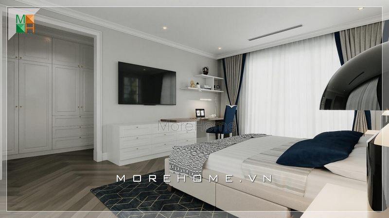 Mẫubố trí phòng ngủ liền phòng thay đồ đẹp, sang trọng