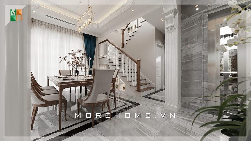 Bố trí nội thất cao cấp theo phong cách tân cổ điển được chọn lựa cho không gian nhà ở biệt thự cao cấp.