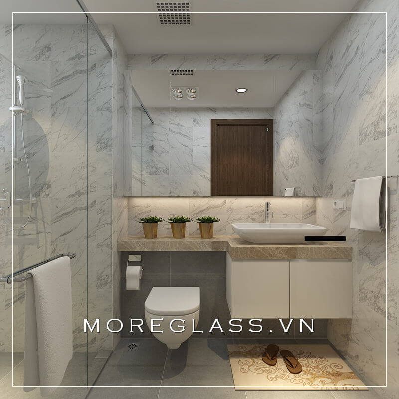 Mẫu thiết kế nhà vệ sinh kết hợp phòng tắm kính nhỏ gọn với diện tích hạn chế được ưa chuộng bởi sự đầy đủ tiện nghi trong các căn hộ chung cư, nhà phố và phòng khách sạn cao cấp.
