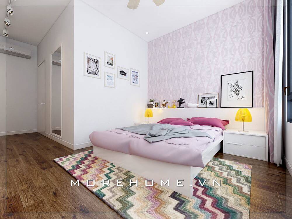 Thiết kế giường ngủ chung cư hiện đại và trẻ trung, đơn giản nhưng không kém phần tiện nghi