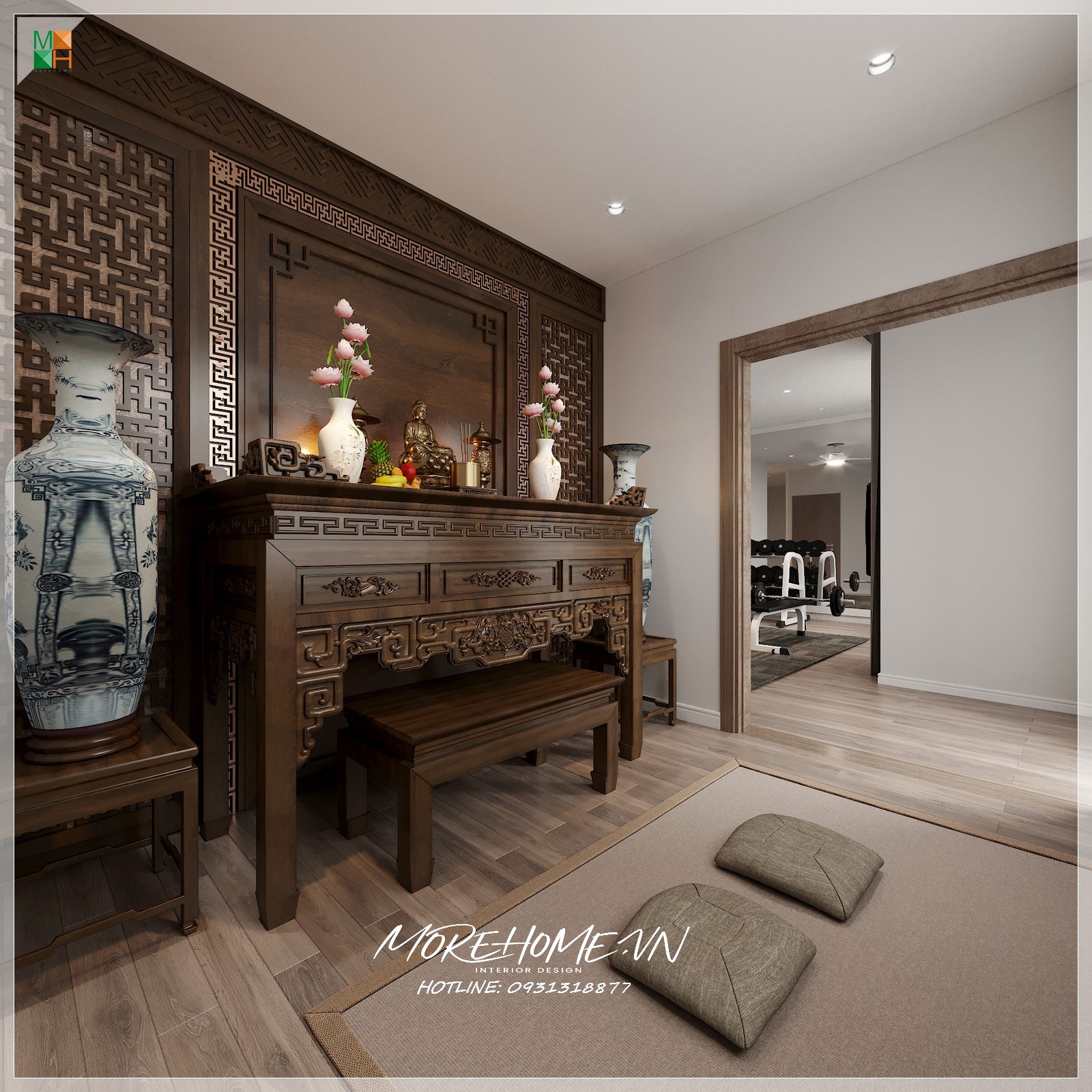 Mẫu thiết kế nội thất phòng thờ biệt thự, nhà phố, chung cư đẹp, sang trọng nhưng vẫn không làm mất đi vẻ trang nghiêm bản chất của nơi thờ phụng.